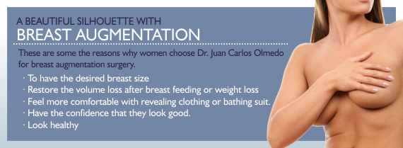 Breast augmentation surgery is the most popular procedure in breast surgery offered by Dr. Olmedo. Click on the photo gallery to look at the results of real patients. Make an appointment with Dr. Olmedo for a personal evaluation.